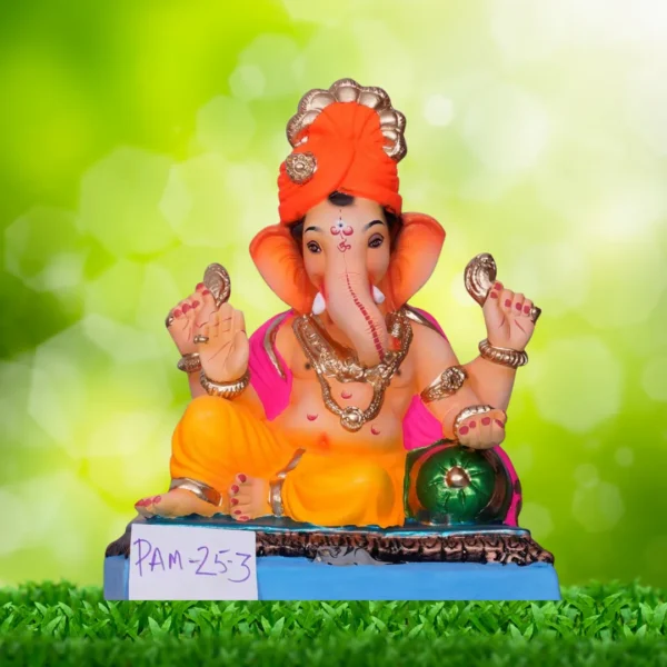 Please note ONLY SHAWL AND DHOTI COLOUR will remain same as Ganpati Idol photograph. COLOUR for Simhasan, Makar, Gadi, Pheta, Pagdi and Takia may vary from the photograph of Ganpati Idol.